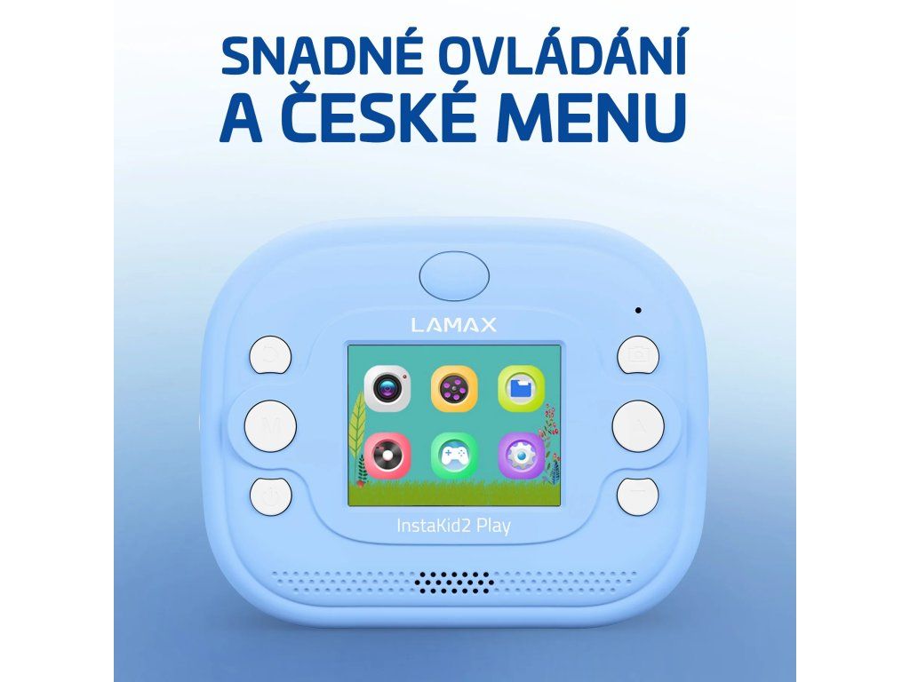 Foťák, co bavíLAMAX InstaKid2 Play je foťák, který neztrácí čas. Děti si s ním jednoduše zaznamenají každý důležitý moment a během vteřiny ho mají v ruce. Černobílé snímky se mohou proměnit v barevné vzpomínky pomocí fixů, které jsou součástí balení – stačí je jen vybarvit, přidat do vlastního alba nebo jimi potěšit třeba babičku. Díky jednoduchému ovládání, dvěma ruličkám v balení (včetně samolepicí), originálnímu designu a výkonné kameře se 48 Mpx a FullHD videem, se foťák stane nepostradatelným společníkem na výlety, oslavy i tvořivá odpoledne s kamarády. Oblíbí si ho i starší děti, které si mohou své snímky i videa ukládat na microSD kartu a uchovat si tak své první filmařské pokusy. Na výběr je růžovánebo modrá varianta a nechybí ani praktická šňůrka na krk, aby měly děti foťák stále po ruce. A když zrovna nefotí? Zábavu zajistí pět her přímo ve fotoaparátu. Tento foťáček totiž není jen o vzpomínkách, je také o radosti, sebevyjádření a fantazii.