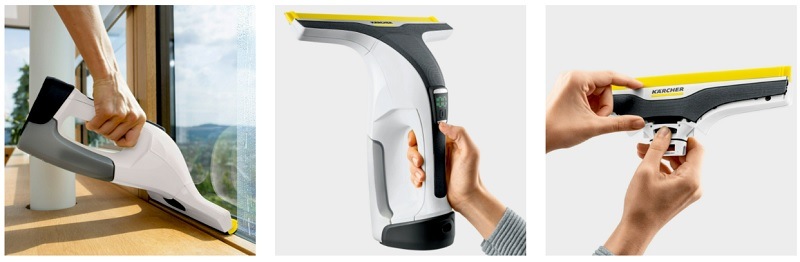 Vylepšená technologie stěrky - Inovativní dlouhá stěrka zvyšuje flexibilitu čištění - ideálně se hodí pro použití v blízkosti podlahy. bateriový čistič oken Čistič oken WV 6 Plus: Extra dlouhá výdrž baterie.