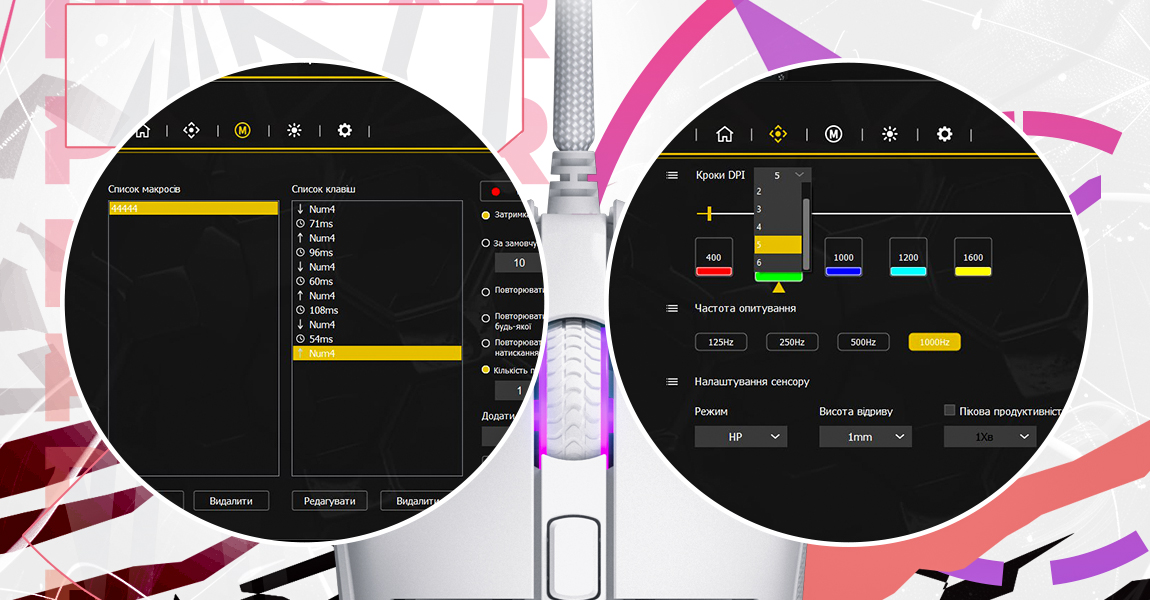 Software pro nastavení umožňuje uživatelům doladit myš přesně podle jejich preferencí a dodat myši osobitý nádech nastavením dvou RGB zón - na rolovacím kolečku a na zadní straně. Podsvícení rolovacího kolečka indikuje zvolenou hodnotu DPI, zatímco samostatná zadní zóna překvapuje živými efekty.