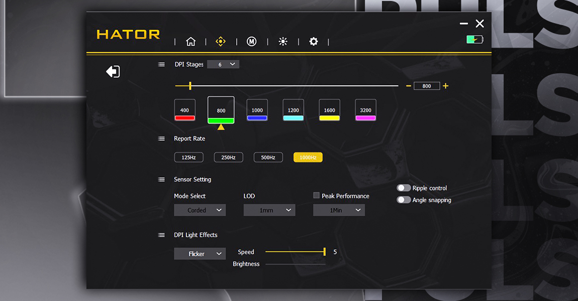 Software HATOR umožňuje myš plně přizpůsobit. Indikátor DPI, podpora maker a možnost jemného doladění dělá z HATOR Pulsar 3 PRO Wireless mocný nástroj.