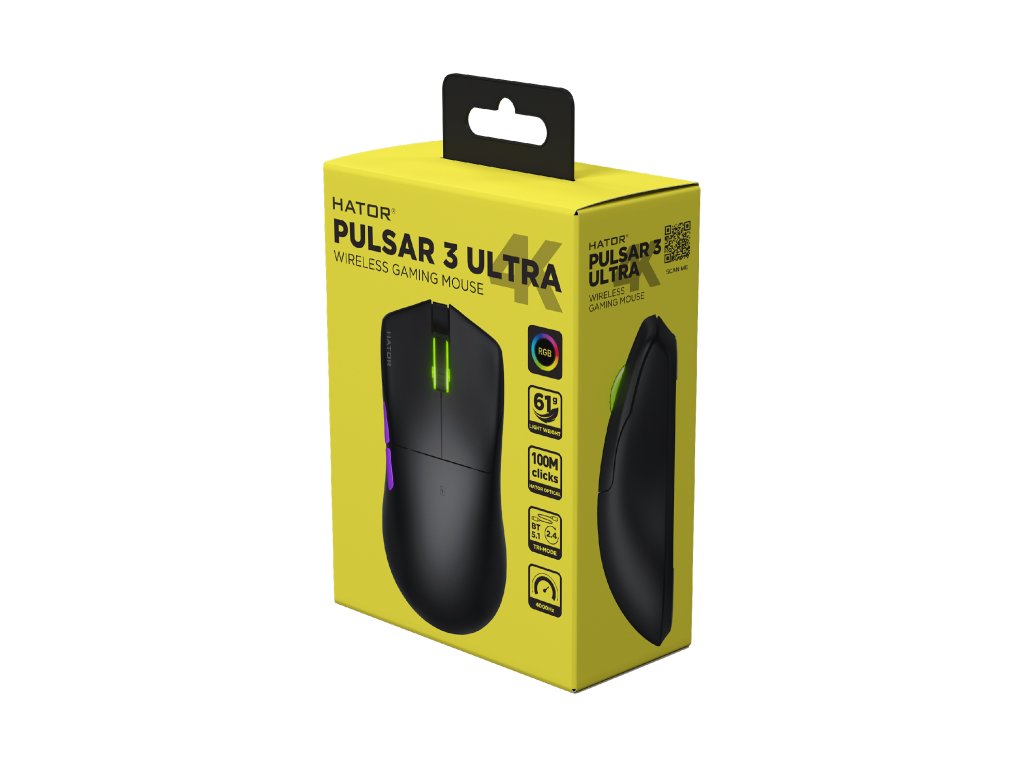 HATOR Pulsar 3 ULTRA 8K+4K bezdrátová herní myš černá