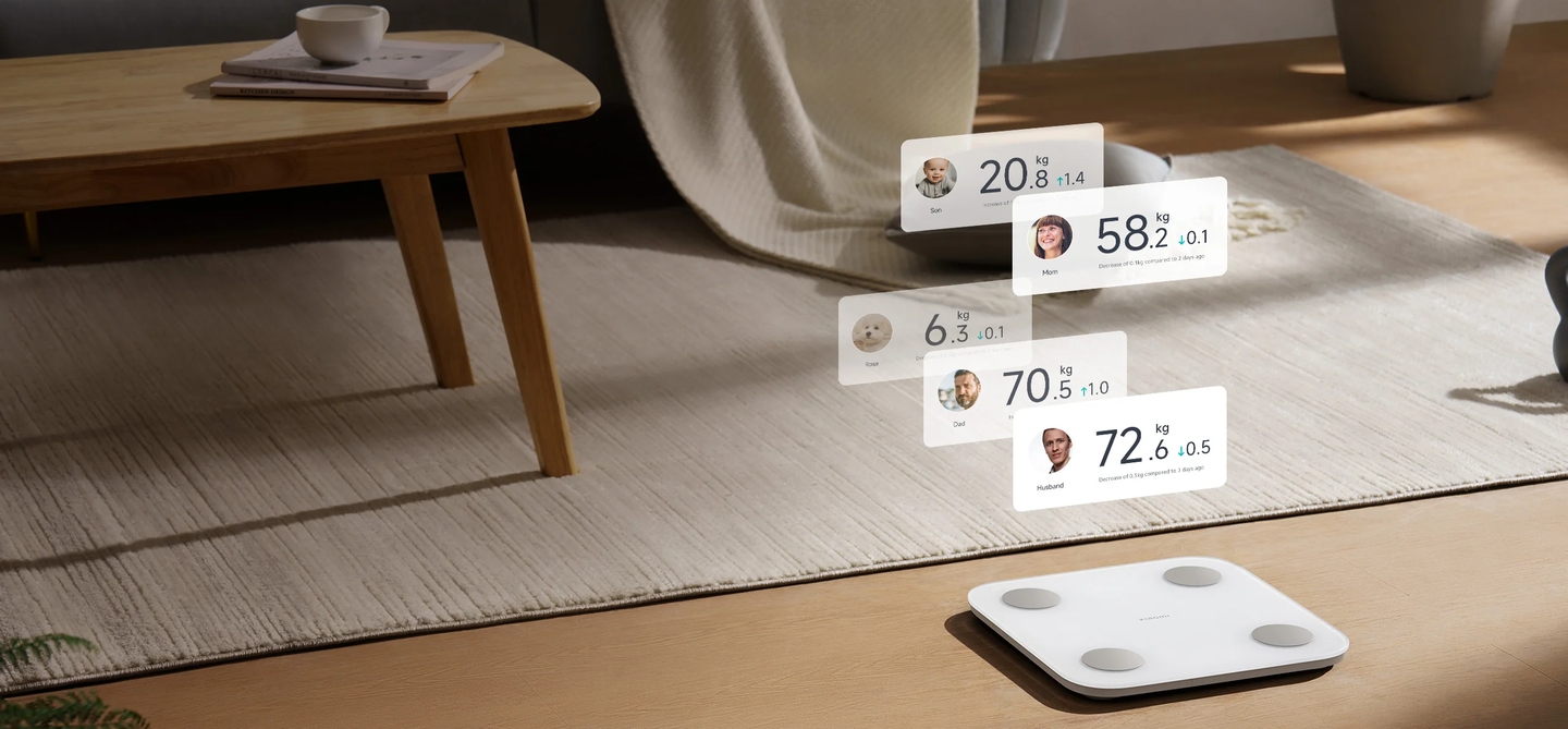 Váha uloží až 36 profilů a podporuje věkové rozmezí 6–80 let pro plné měření. Má režimy pro hosta, vážení dětí a malých předmětů a dokáže automaticky rozpoznat uživatele, což zjednodušuje každodenní sdílení v domácnosti.