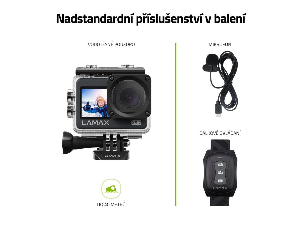 Nejen akční záběry, LAMAX X9.2 se parádně hodí i na vlogy. Externí mikrofon zachytí bez šumu tvůj hlas i okolní zvuky, tak buď slyšet! Dále se můžeš spolehnout na dálkové ovládání a kompletní sada úchytů a držáků ti pomůže získat unikátní záběry. Kvalitní konstrukce a vodotěsné pouzdro pro potápění jsou ready na každou výzvu.