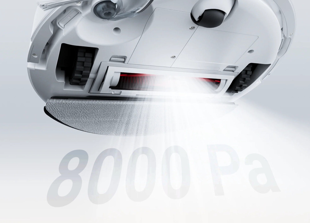 Robotický vysavač zaujme svým sacím výkonem 8 000 Pa. Bez problémů si poradí se sběrem nečistot i vlasů z podlahových štěrbin i hlubokých vrstev koberců.