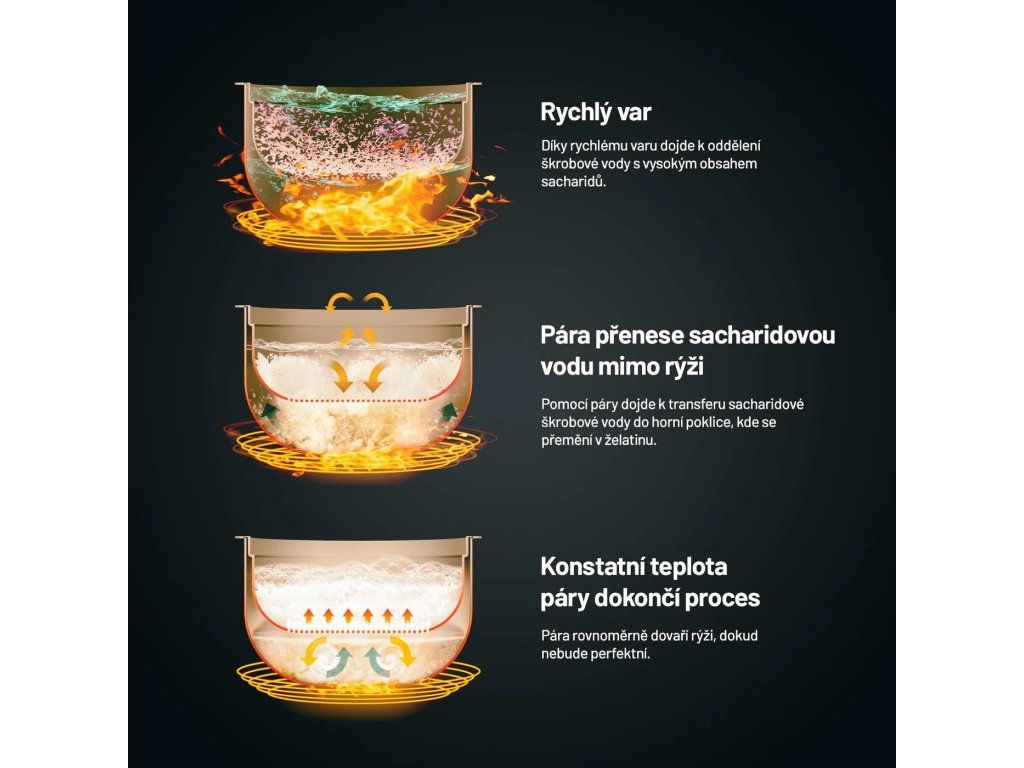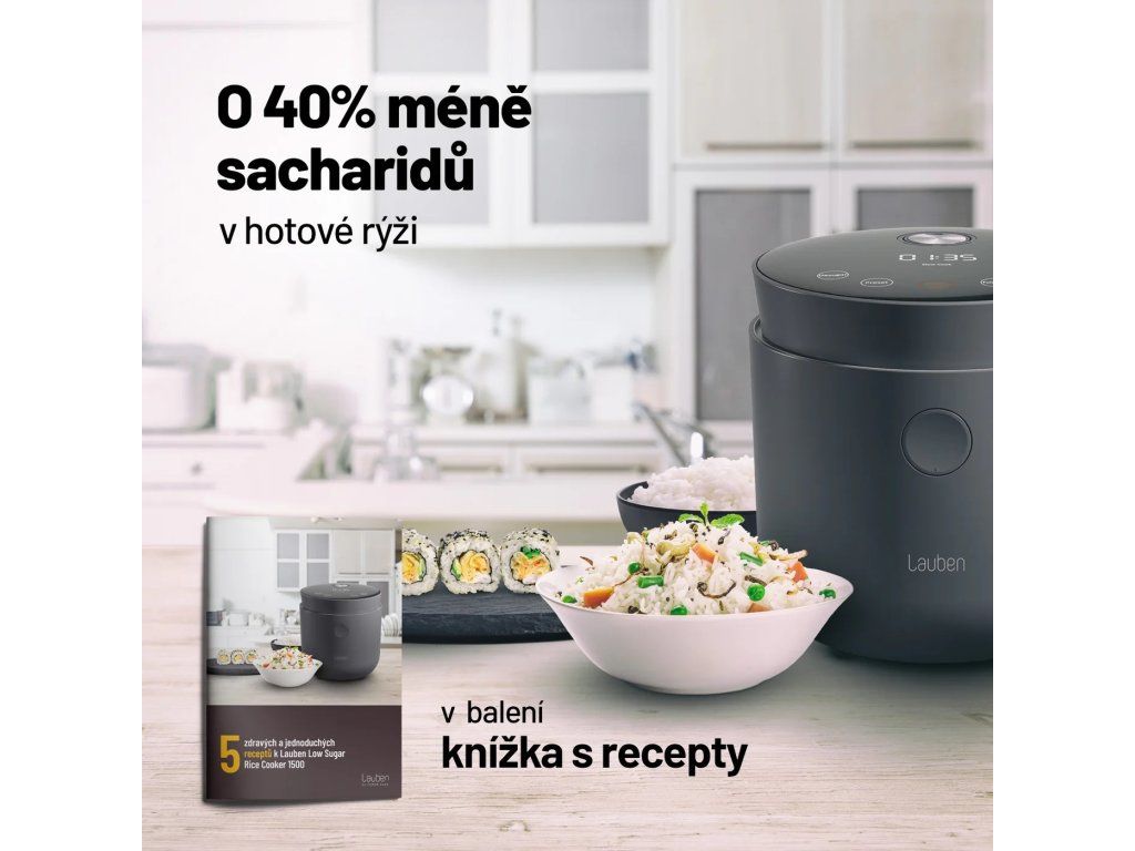 Rýže s až o 40 % nižším obsahem sacharidůLauben Low Sugar Rice Cooker je víceúčelový prémiový rýžovar s funkcí low sugar, při níž díky speciální technologii vaření dochází k separaci sacharidů. S tímto pomocníkem dovedete k dokonalosti všechny druhy rýže a díky 6 nastavitelným režimům rychle vytvoříte zdravá a chutná jídla i z dalších surovin. S rýžovarem Lauben připravíte luštěniny, polévku nebo třeba ovesnou kaši, aniž byste zapnuli sporák.