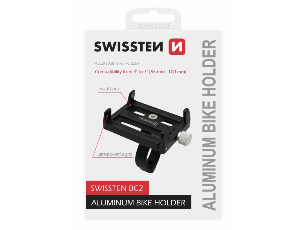Držák SWISSTEN BC2 je vyroben z hliníku, jenž mu dodá nejen elegantní vzhled, ale i velkou odolnost při jízdě po nerovné silnici.