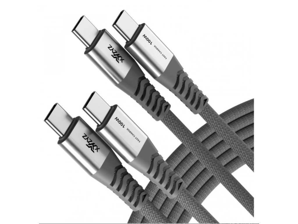 XYYZYZ dobíjecí kabel USB-C/USB-C s textilním opletem, PD & QC, 100 W, 2 m