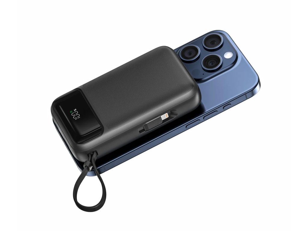 Swissten Power Bank 20000 mAh PD 20W s integrovanými kabely USB-C a Lightning (kompatibilní s MagSafe)